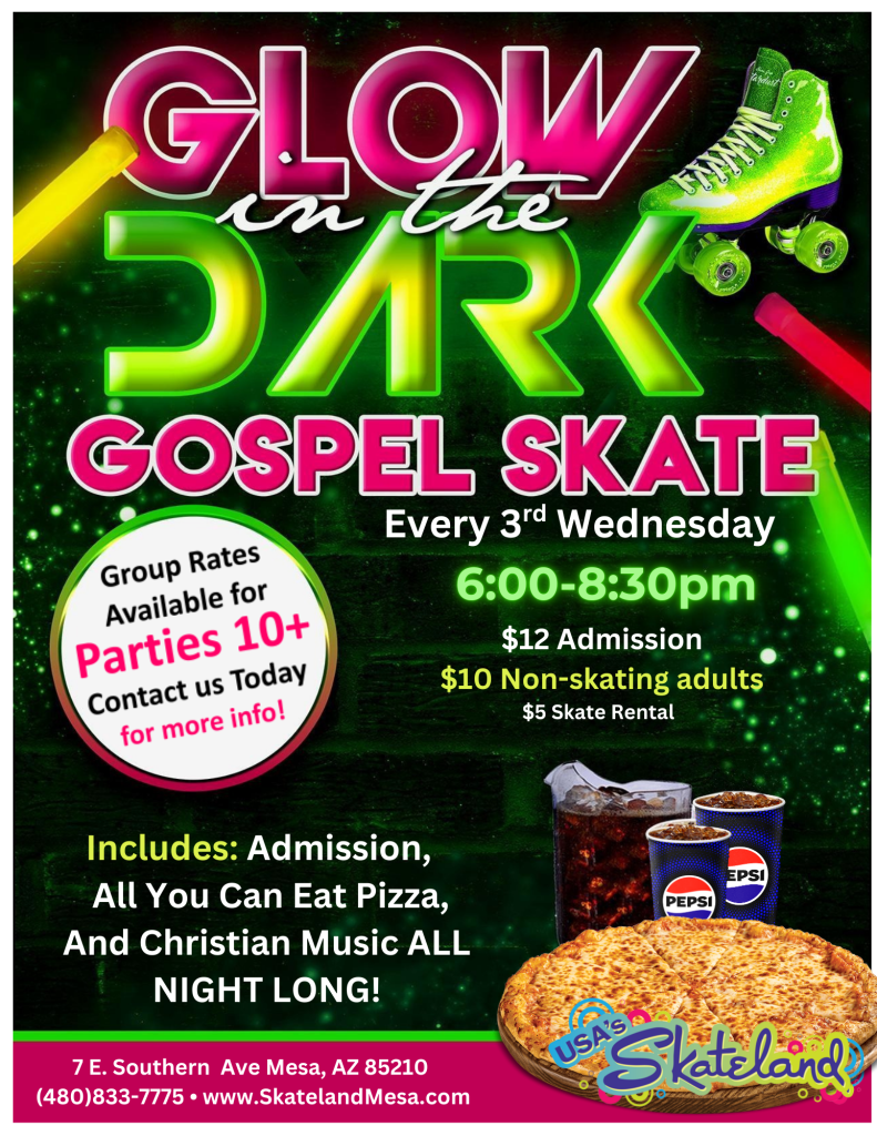 Join us every 3rd Wednesday from 6β8:30pm at Skateland Mesa for a night of faith, fun, and fellowship! π