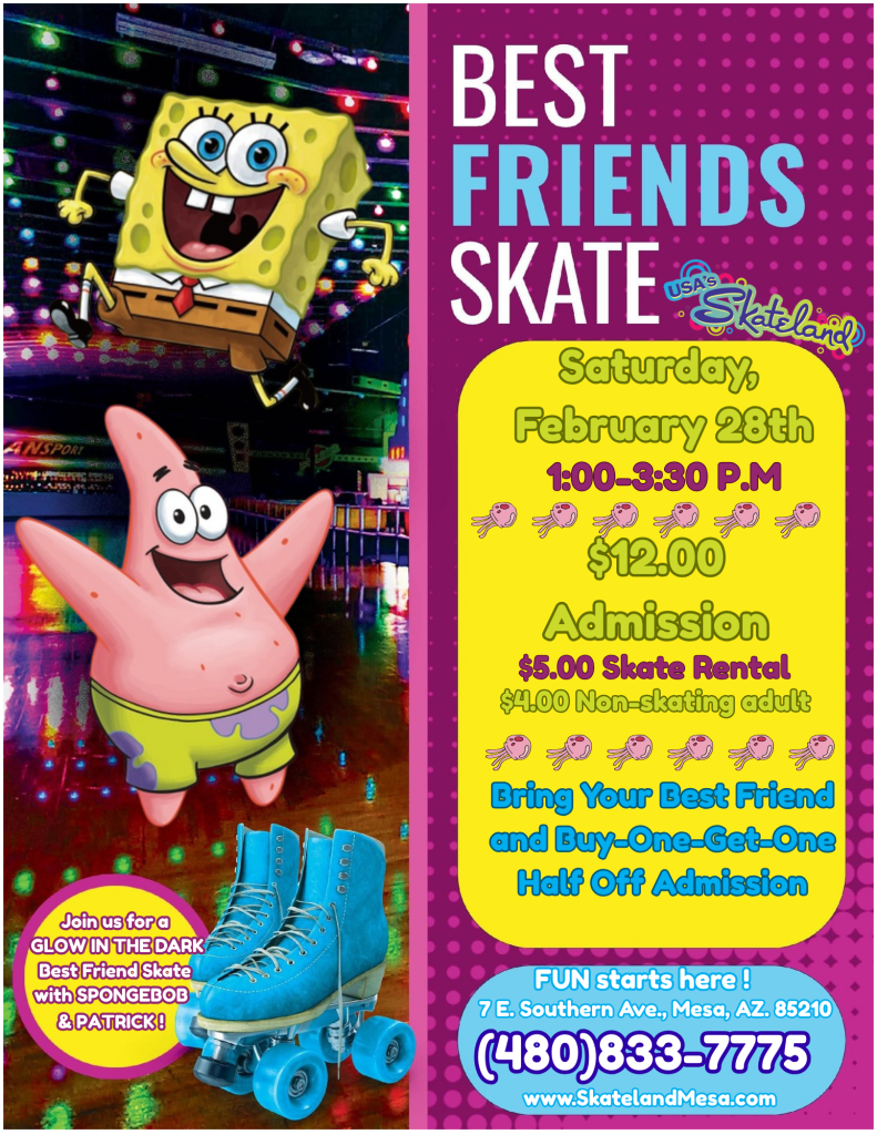 Best Friends Glow Skate with SpongeBob & Patrick is bubbling with fun at USA’s Skateland Mesa! 🧽⭐🛼✨