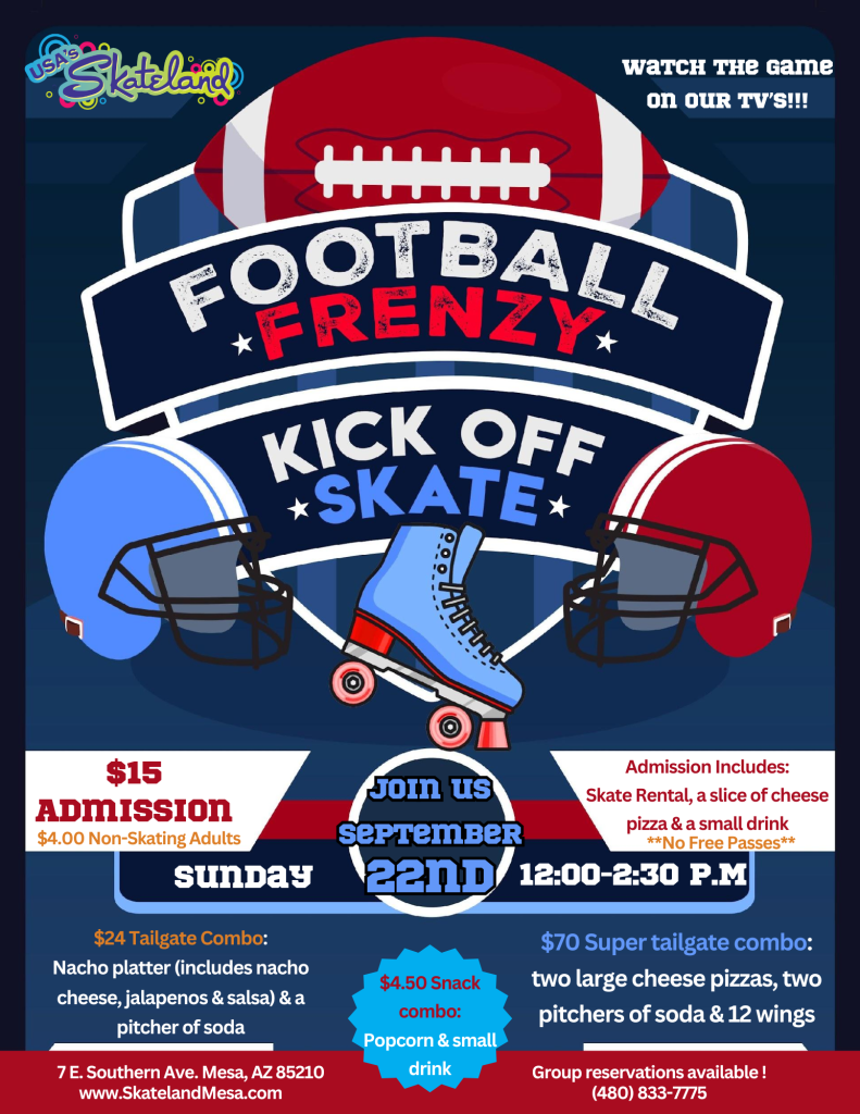 Join us from 12:00-2:30 For our Football Frenzy Skate Party