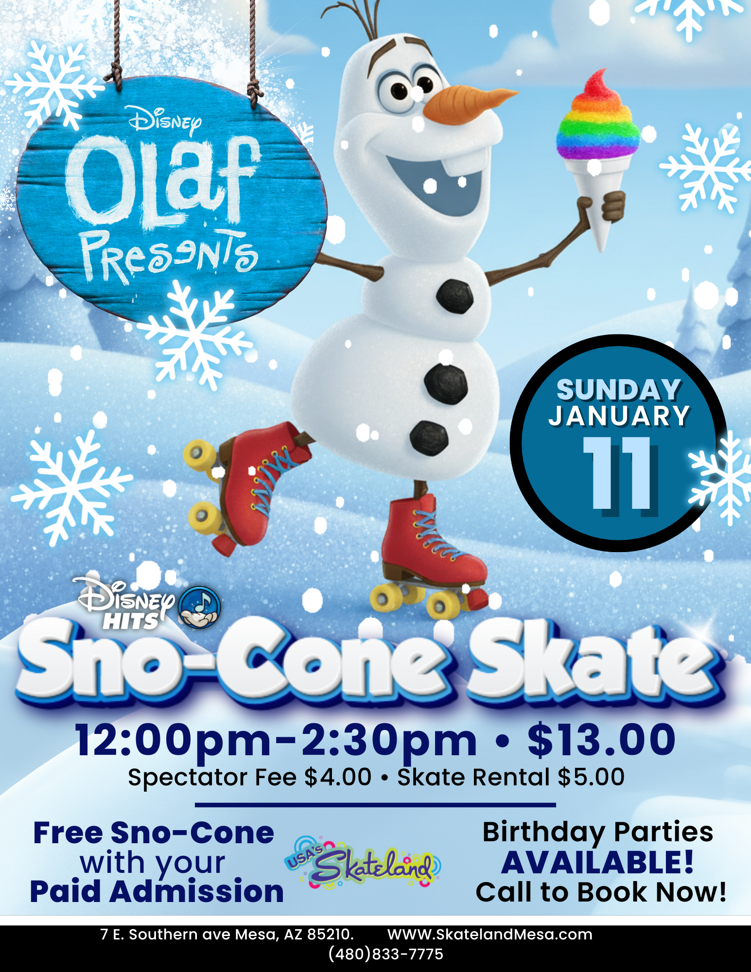 ☃️ FREE RAINBOW SNOW-CONE with every paid admission!