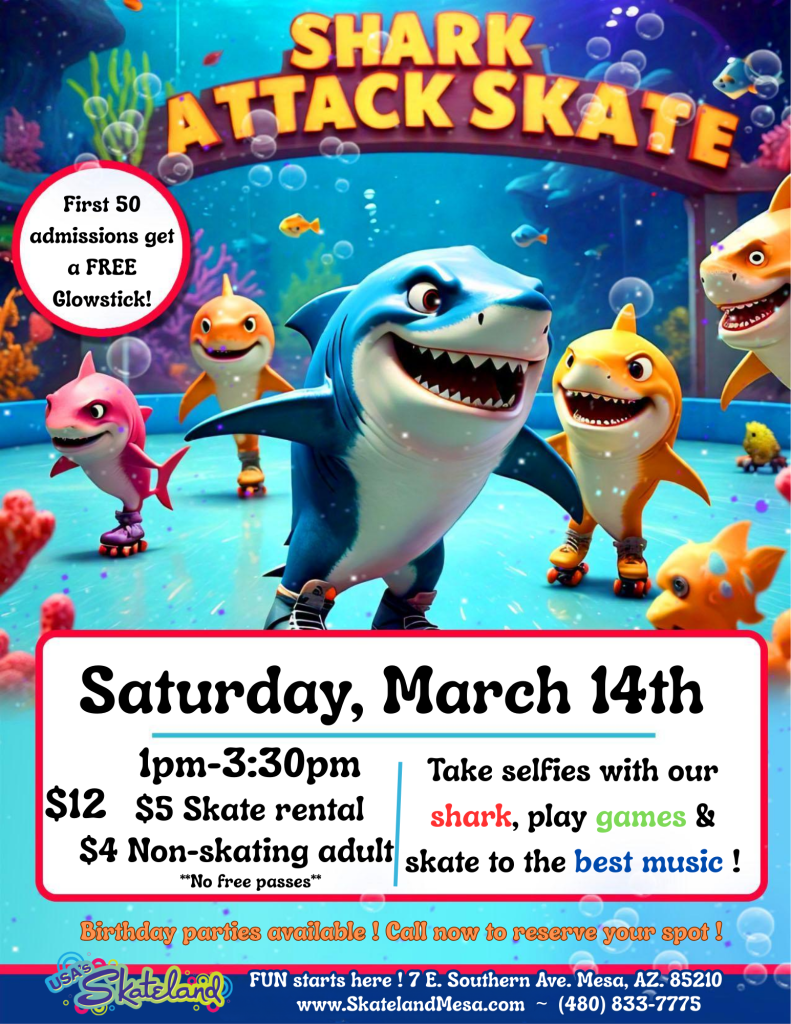 👉 Dive into the fun, skate with sharks, and make waves this Saturday! 🌊🛼🦈