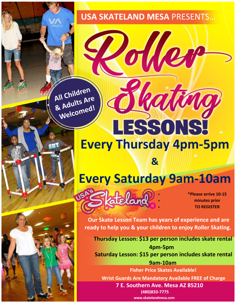 Admission: $15.00 includes skate and wrist guard rental, a 1 hour skating lesson and admission to our 10am-12:30pm skating session!!