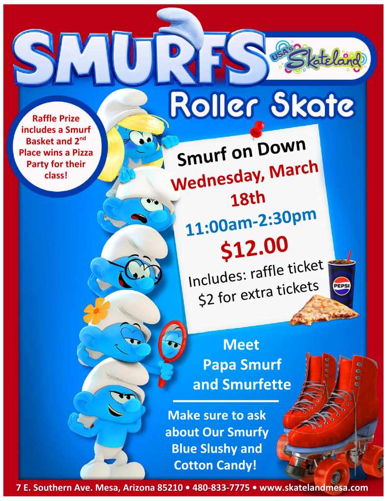 Get ready to Smurf on down for a magical blue adventure at USA’s Skateland Mesa! 🟦🍄🛼✨