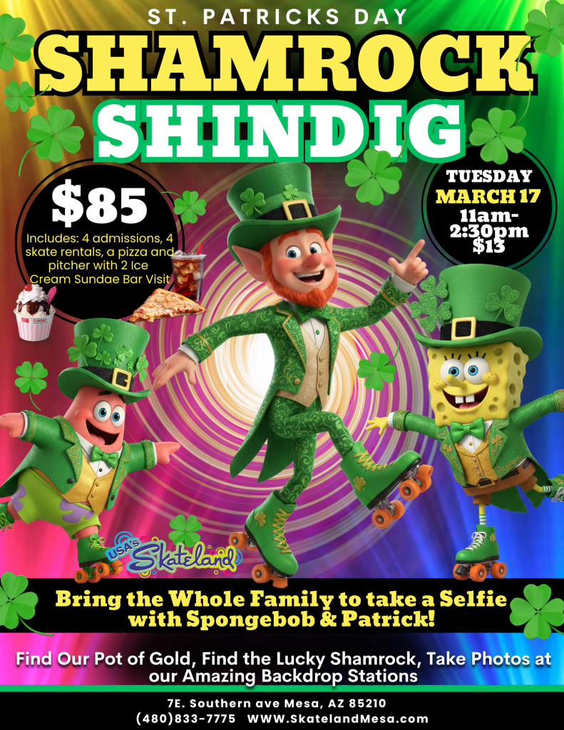 Get ready to go green and get lucky at the ultimate St. Patrick’s Day bash at USA’s Skateland Mesa! 🍀✨🛼🎉