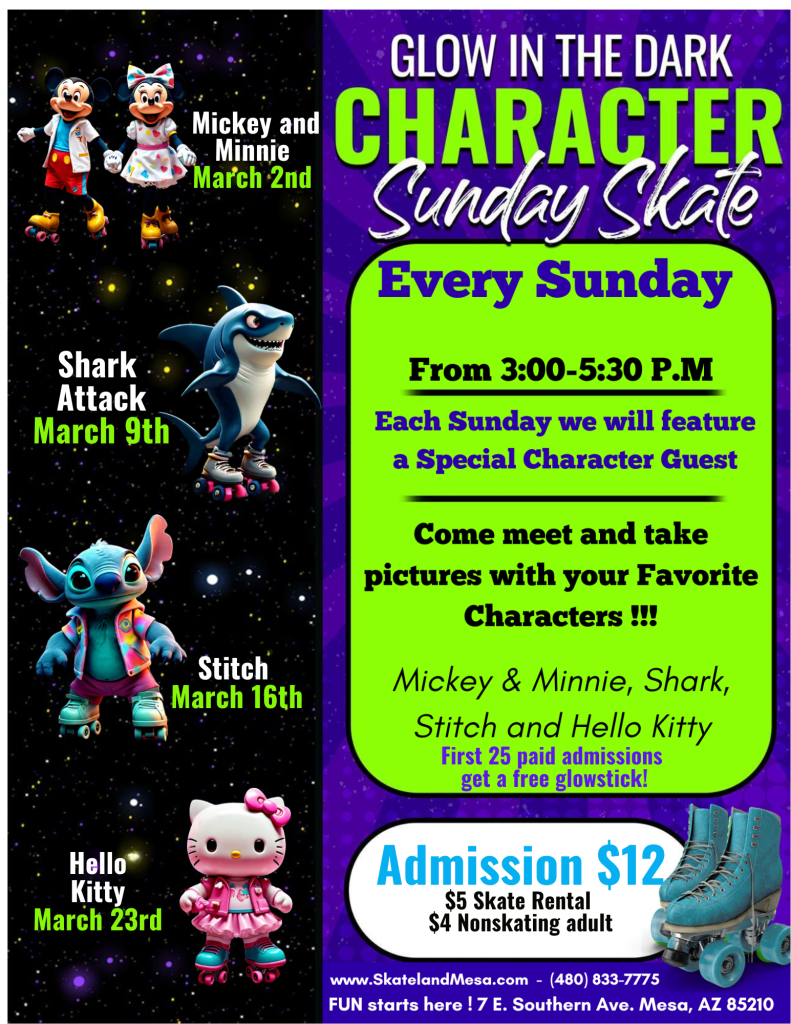 That is correct every Sunday we will have a friend join us for our Glow skate !
