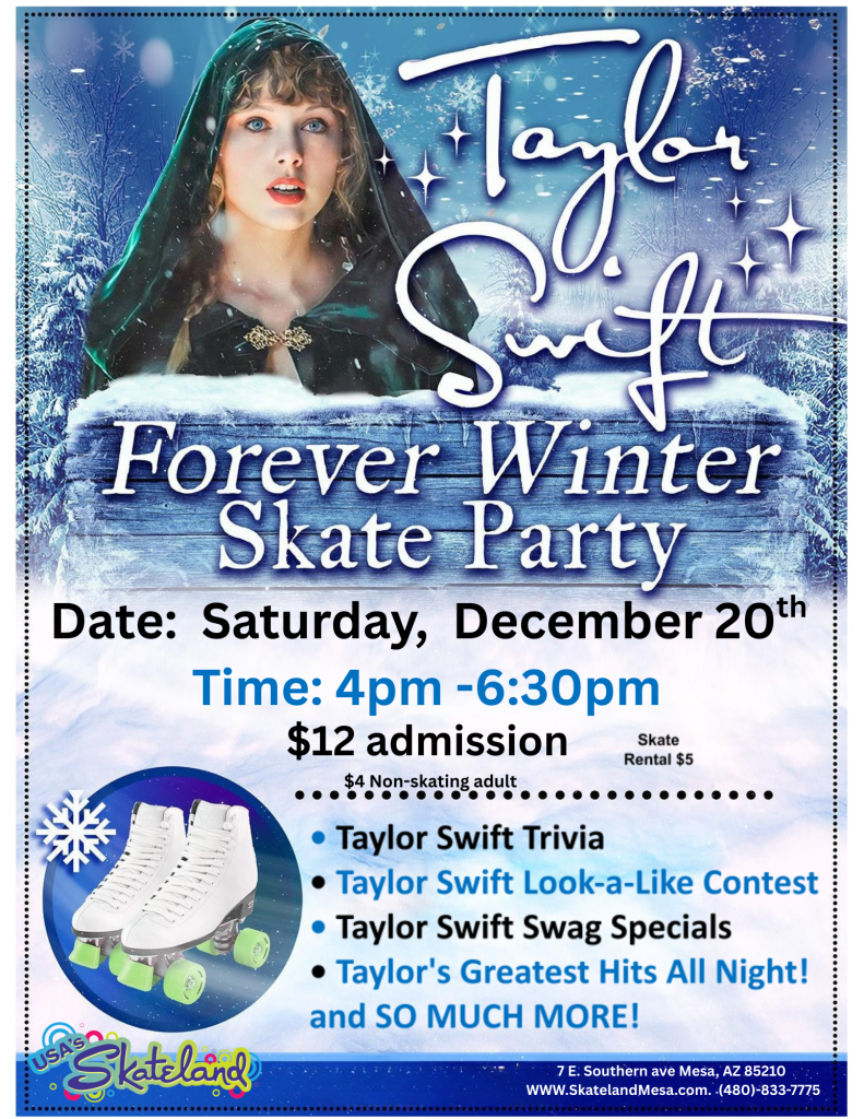🎶 Taylor’s Greatest Hits All Night! Skate to songs from every era—Lover, Reputation, Fearless, Speak Now & more!