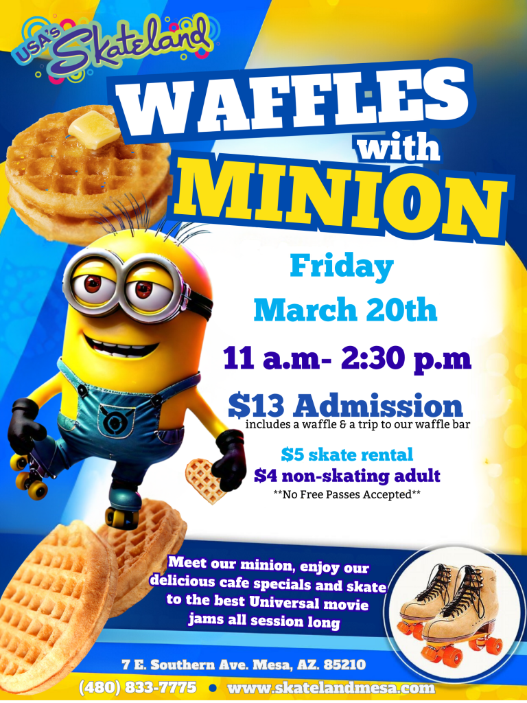 The Minions are taking over Skateland Mesa for the ultimate Friday fun-fest! 🍯🥞