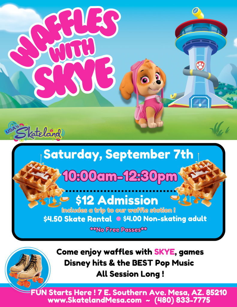 Enjoy games, cafe specials, photo ops with our very special Paw Patrol friend SKYE & tons of FUN !