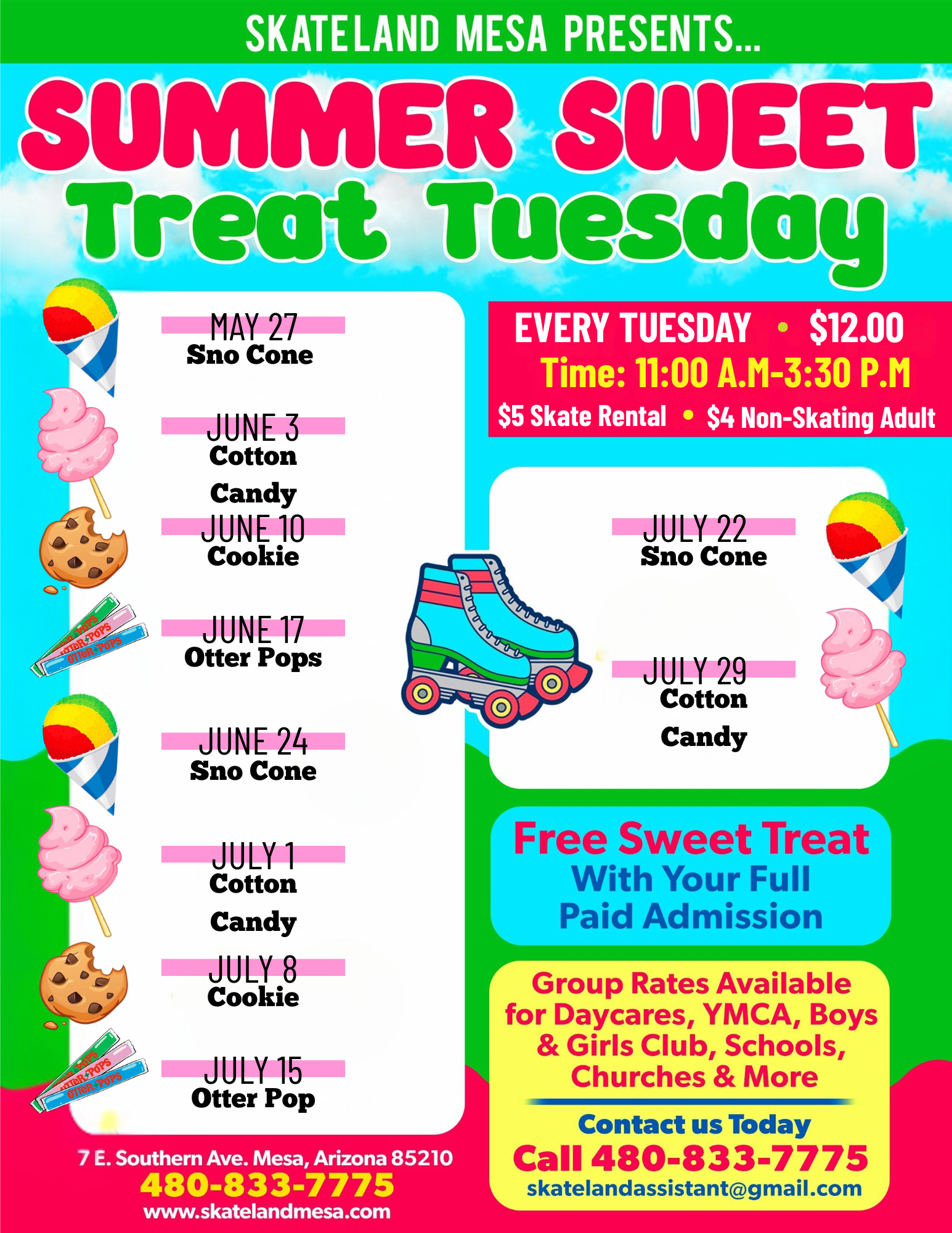 🛼 Roll into Sweet Treat Tuesdays for a skating session topped with something delicious! 🍭 🍦 Enjoy your favorite moves on the rink and indulge in tasty surprises — the perfect combo of fun and flavor! 🎉👟 Get a FREE sweet treat with every regular admission! $12.00 Admission $5.00 Skate Rental $4.00 Non-skating Adults **Wrist […]
