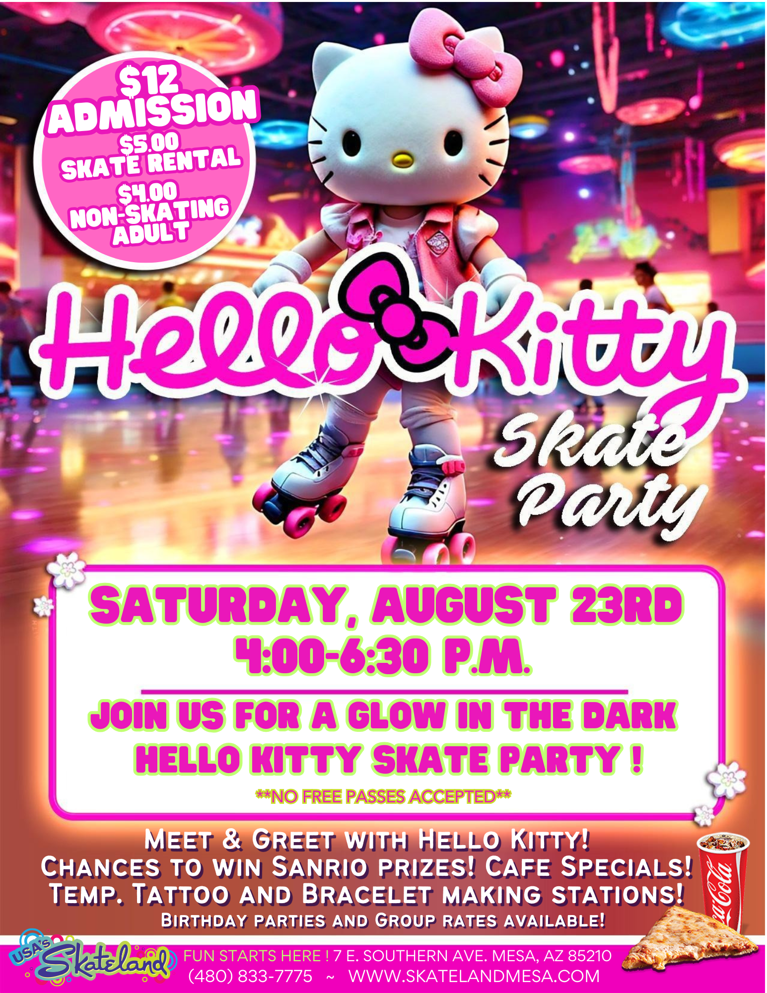 🌟🎀 HELLO KITTY GLOW SKATE NIGHT! 🎀🌟 Get ready to glow with cuteness on wheels! Calling all Hello Kitty fans – it's time to shine BRIGHT under the blacklights at the most adorable skate party of the year! 💖🛼 🩷 Neon lights, glowing bows, and your favorite Sanrio vibes all in one magical night of […]