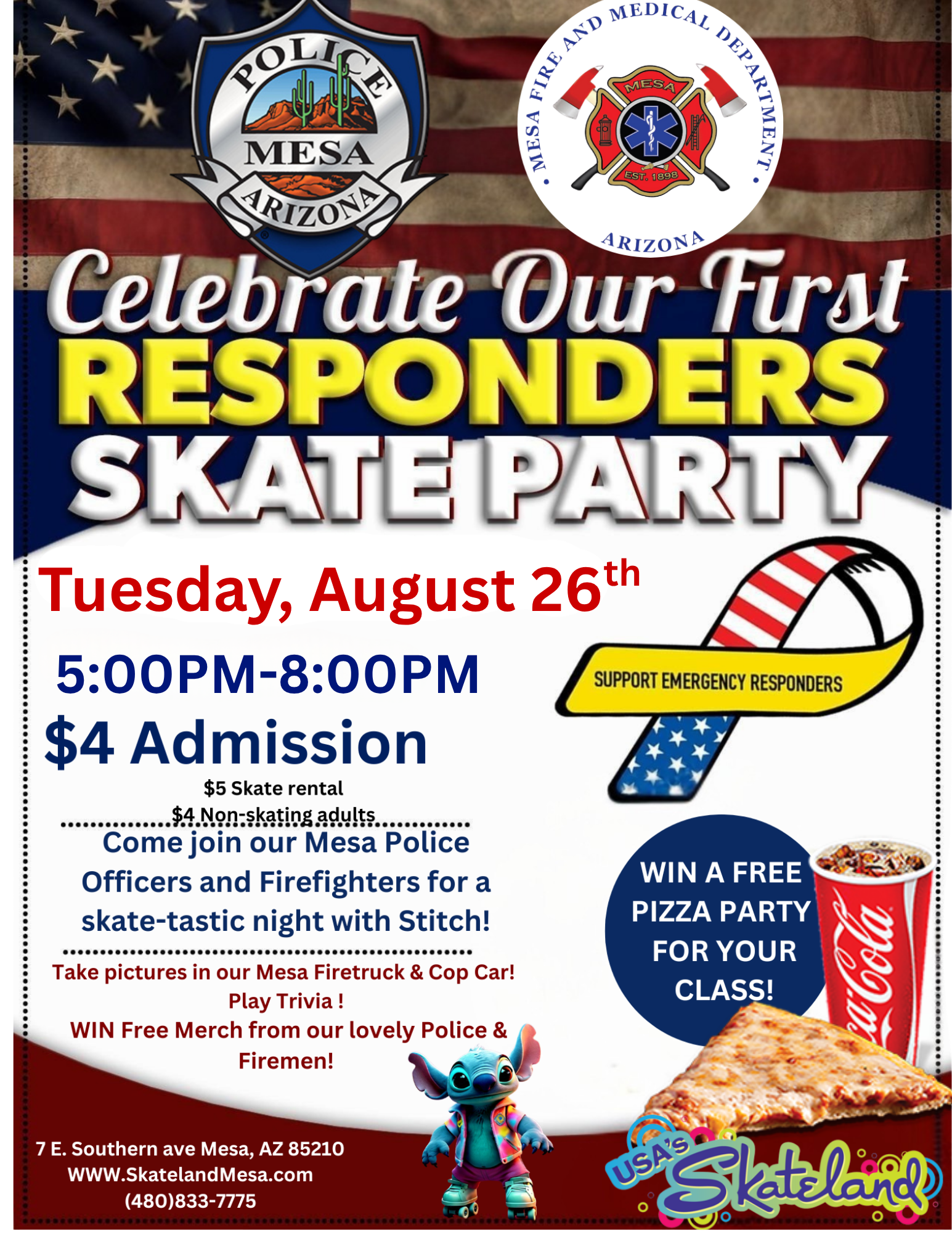 Come Celebrate Our Police Officers & Firefighters ! Don't Forget to Skate around with Stitch! Win Cool Merch from Our Local Police Officers! Take Pictures in The Police Car & Firetruck! Play Trivia to Win Some FUN Prizes! Don't Forget to Enter Our Free Raffle to WIN a Free Pizza Party For Your Class! $4 […] |