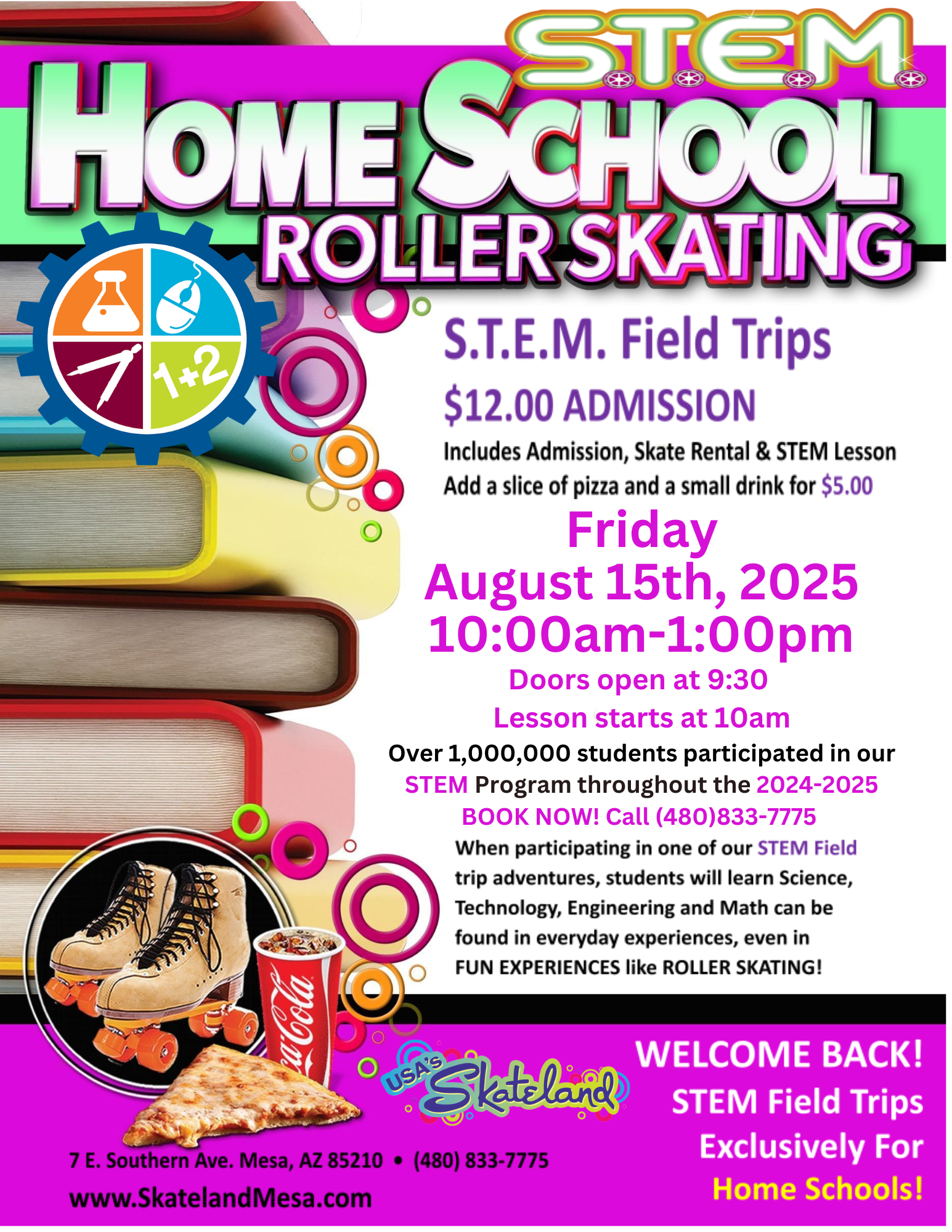 Come Join us for our Homeschool STEM Skate! Have your Kids learn about Lesson 8: Newton's Laws of Motion! Doors open at 9:30am Lesson starts at 10am! Doors will close at 10:30am. 10am-11am is the Lesson and 11am-1pm will be a FUN Skate for your kidos! Book ahead for 10 or more kids! No minimum. […]