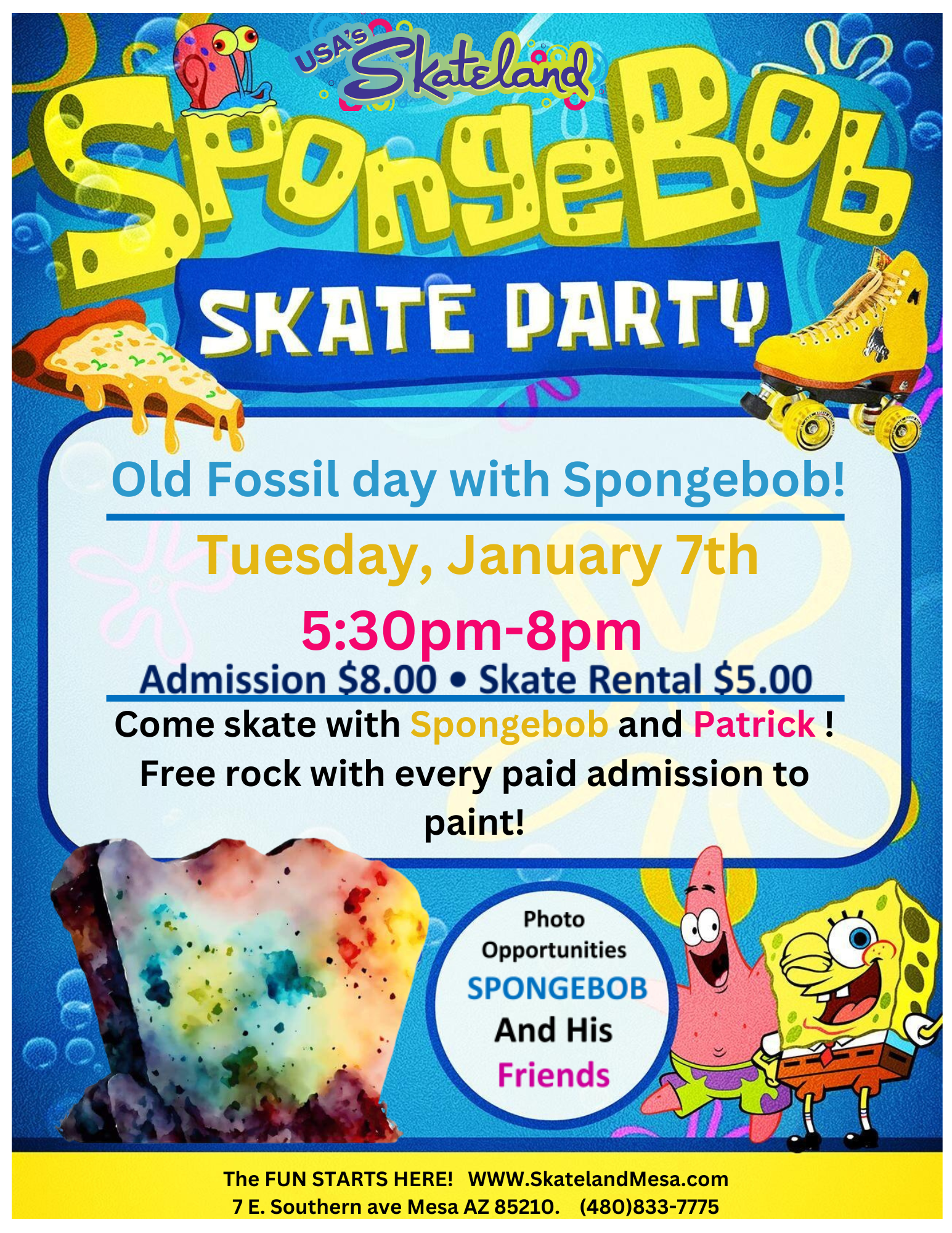 Old Fossil Skate With Spongebob and Patrick! Come celebrate Old Fossils with us! That's right a FREE Rock to paint with Spongebob and Patrick! $8 Admission includes a rock to […]