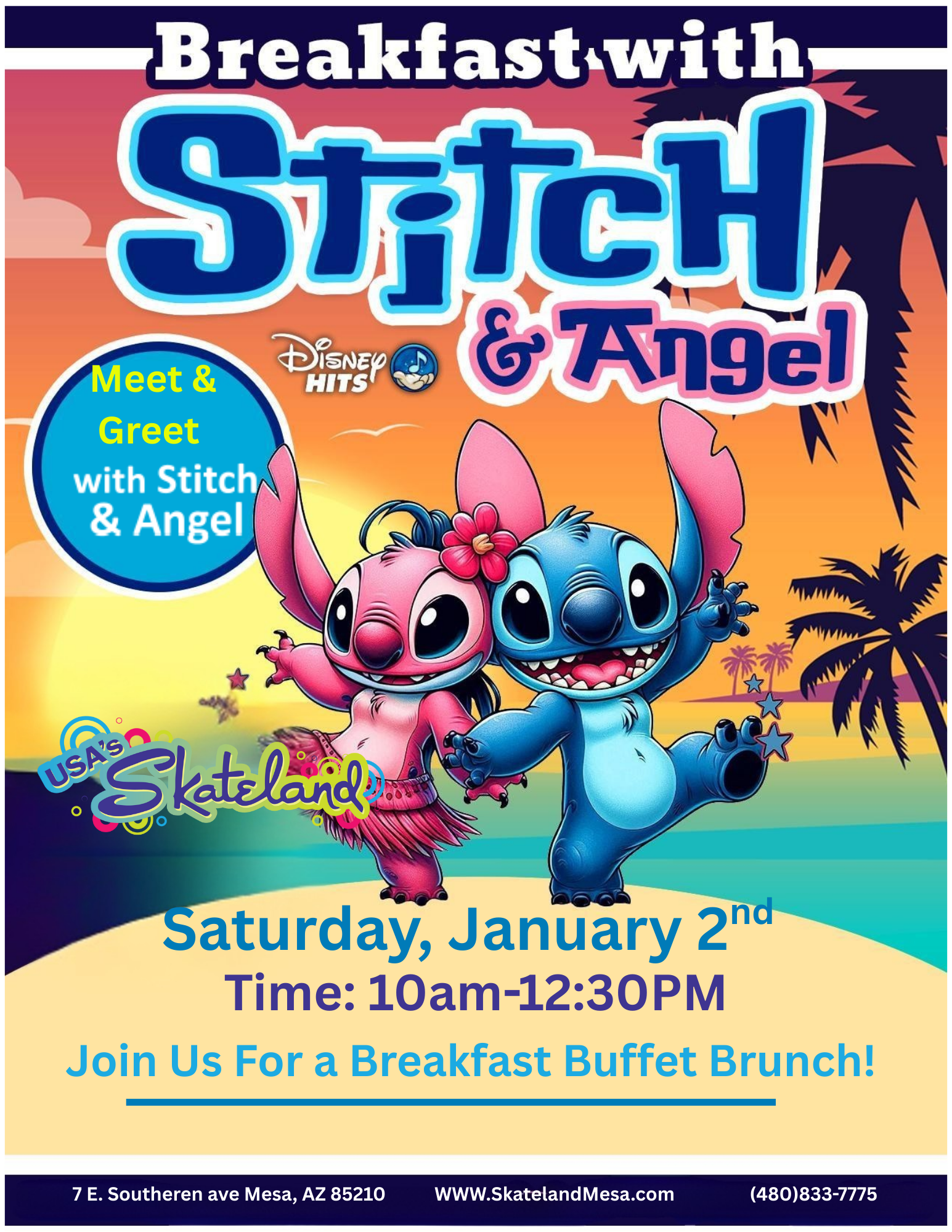 Bring your lei, your appetite & your whole Ohana – this one’s gonna be 626% FUN!! 🎟️ All-you-can-eat Breakfast Buffet Brunch + Skating + Character Meet & Greet 👽💕 STITCH & ANGEL in the house!! Hugs, photos, dancing & total Hawaiian chaos 🍳 Waffles, fruit, donuts, juice & more! 🎶 Disney hits, Lilo & Stitch […]
