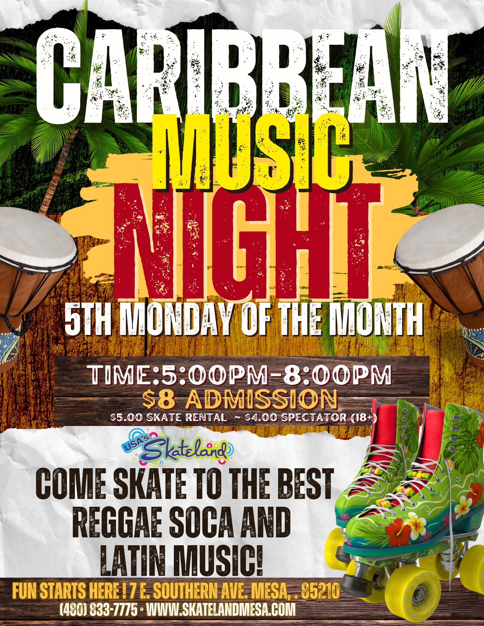 🌴🛼 CARIBBEAN MUSIC SKATE NIGHT IS COMING! 🛼🌴 Get ready to roll into island vibes at Skateland Mesa’s Caribbean Night! 🌺🔥 Bring your friends and skate to the best Reggae, […]