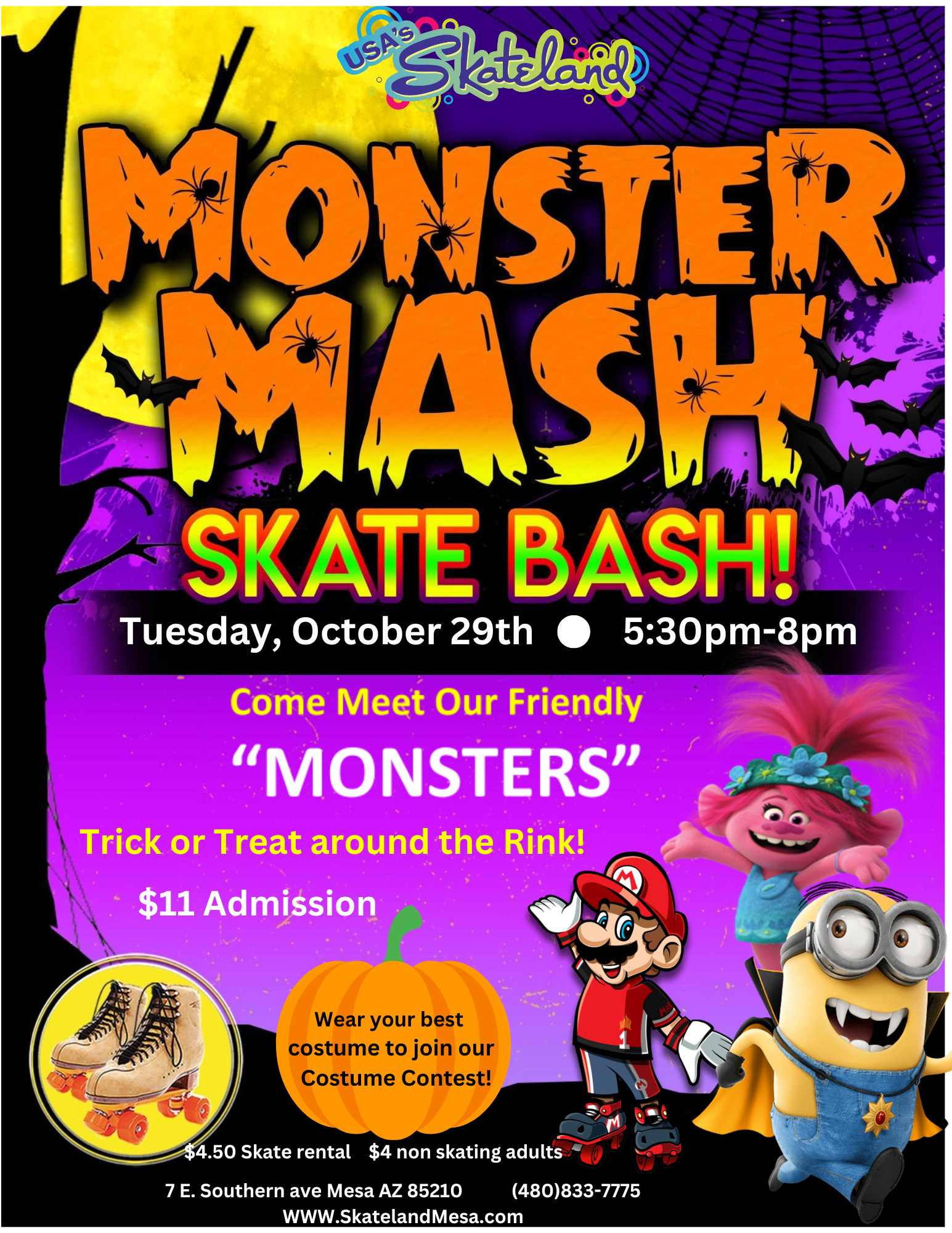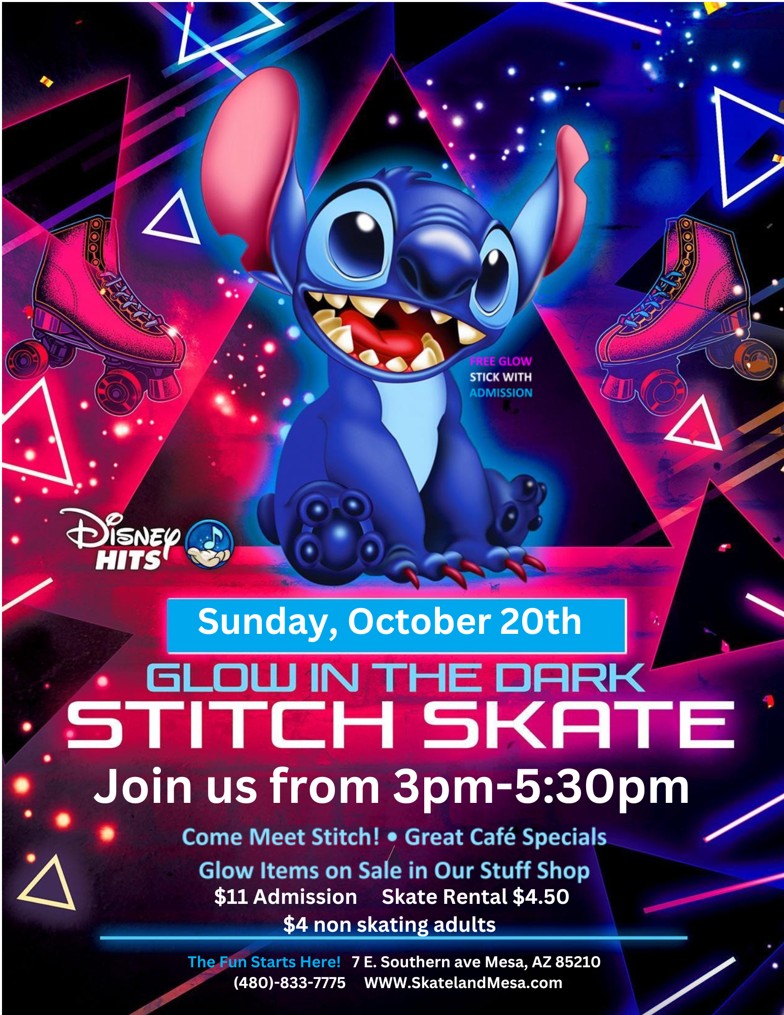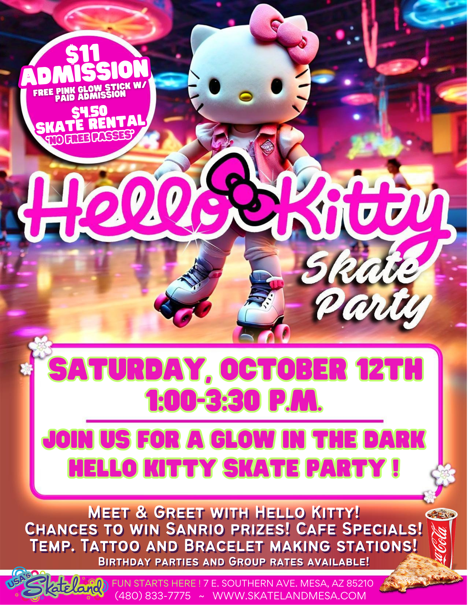 Meet and Greet with Hello Kitty during this fun Glow Skate session!Temporary tattoo station, friendship bracelet station and cafe specials all session long!Chances to win Sanrio Prizes! $11 Admission incl. a free pink glow stick!$4.50 Skate/Roller Blade Rental$4.00 Non-Skating adults Wrist guards are mandatory for all skaters regardless of age or experience. Wrist guards are […]