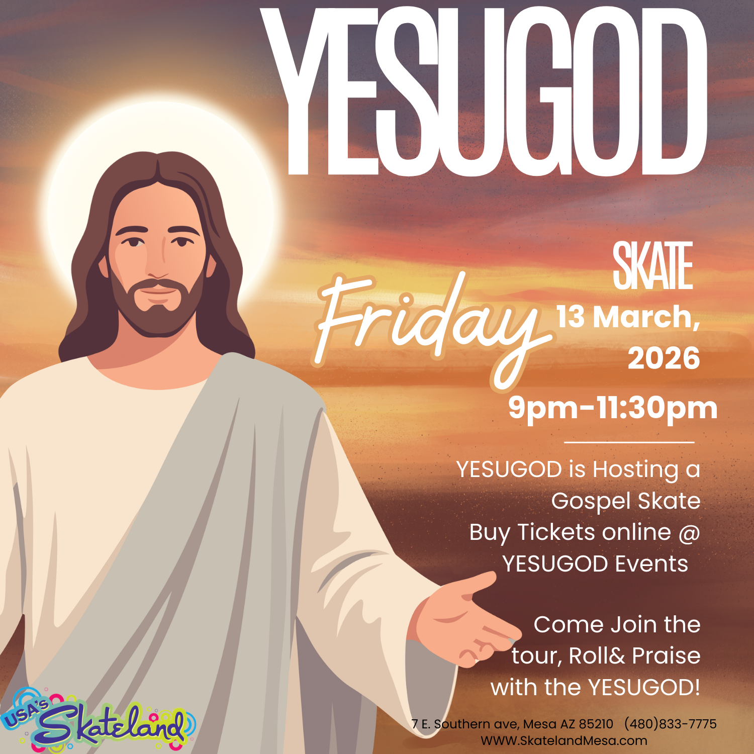 ✨🛼 ROLL, PRAISE & CELEBRATE AT THE YESUGOD GOSPEL SKATE! 🛼✨ Get ready for a powerful night of faith, fellowship, and fun on wheels! Join us at Skateland Mesa for […]