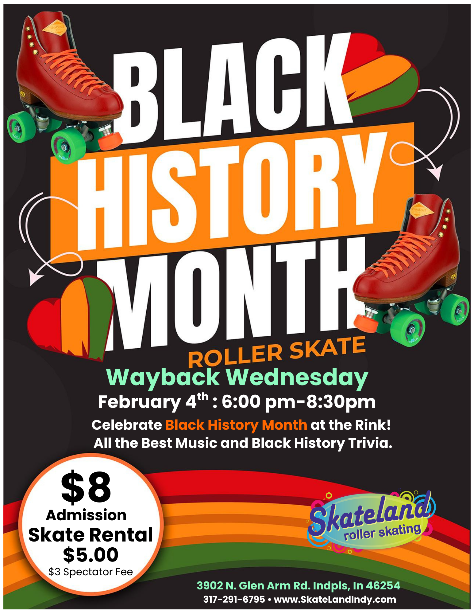 Celebrate Wayback Wednesday at our Black History Skate! Skate to timeless hits and join in Black History trivia for a chance to win prizes.