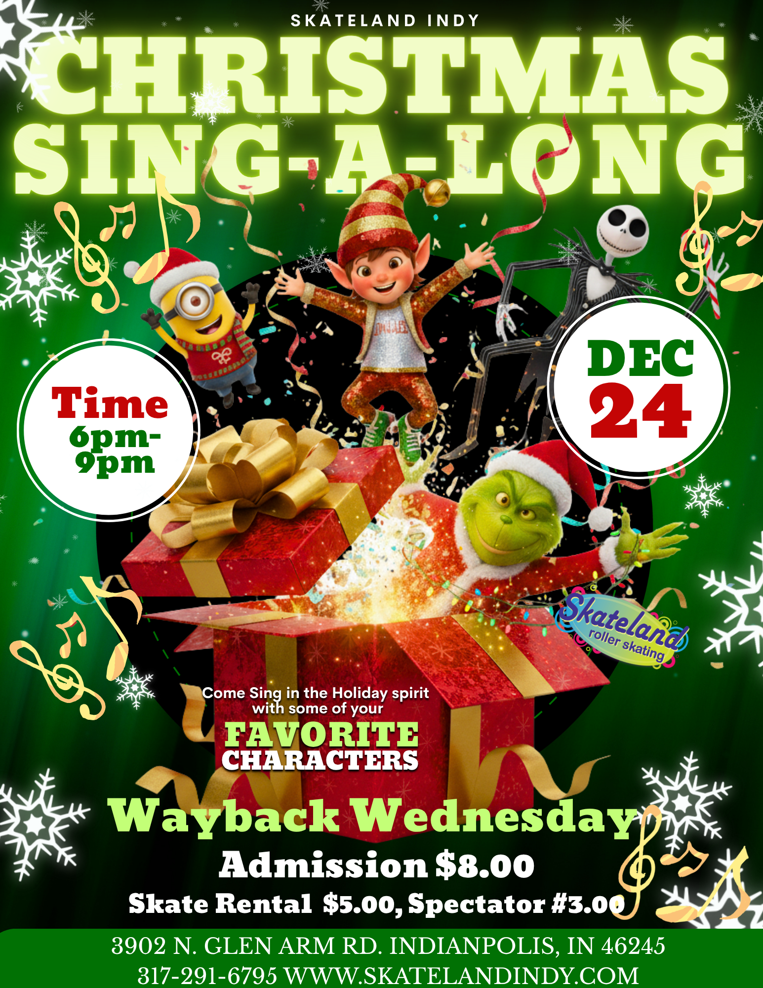 Spend Christmas Eve with us at Skateland and skate into the holiday spirit! Glide around the rink while singing along to your favorite Christmas hits and enjoy festive vibes with family and friends.