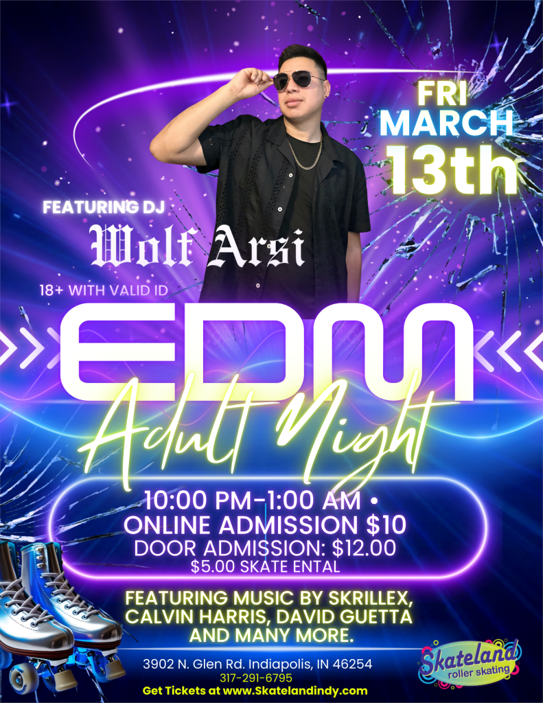 We are launching our first EDM adult skate night with DJ Wolf Arsi!