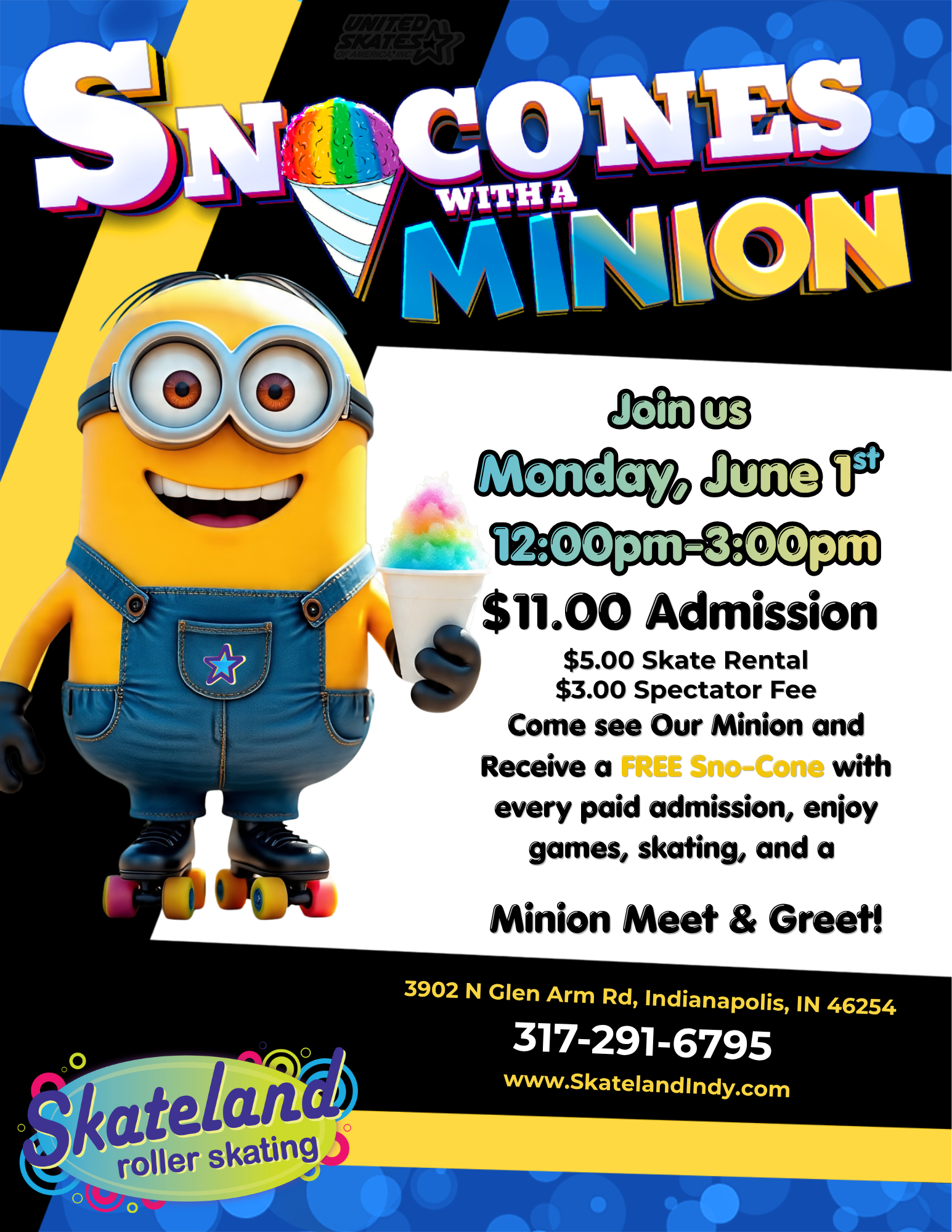 Cool off this summer and join us for a fun-filled day! Come meet our Minion and enjoy a FREE SnoCone with every paid admission! Admission Details: $11 Admission$5 Skate Rental$3 […]