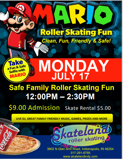 Come meet Mario! Admission: $9.00 Skate Rental: 5.00 Non-Skating Parents: $3.00
