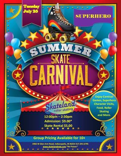 Thursday, July 20 9:30am - 12:00pm Admission$9.00 includes skate rental, donuts and a juice* *No Passes/all guests pay admission* Make your group reservation today!