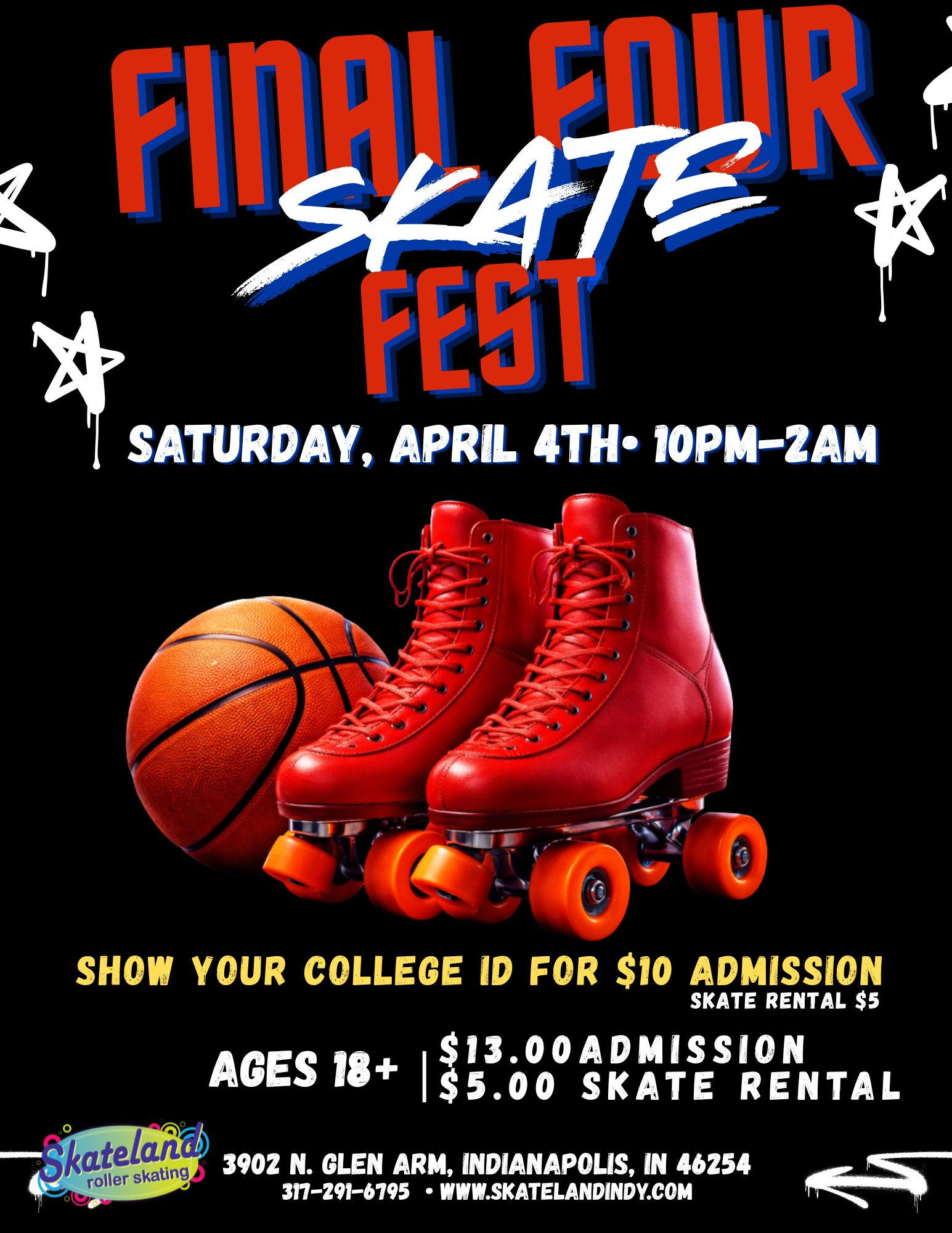 Final Four is in Indy! Calling all college students—pull up to Skateland this Saturday night and roll with us!Show your college ID and get in for just $10, with 5.00 skate […]
