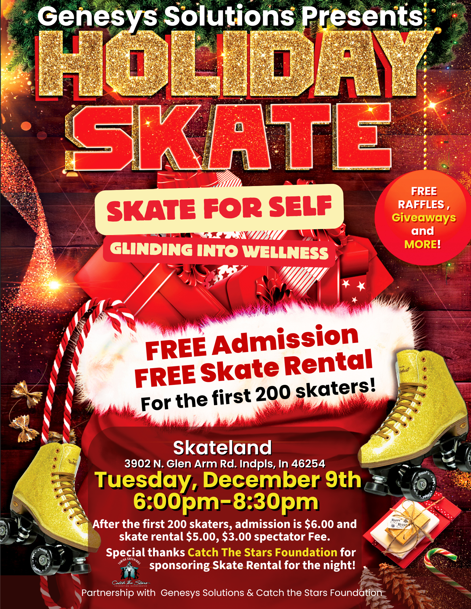Save the Date! Tuesday, December 9th! Enjoy FREE Admission and FREE Skate Rental for the first 200 skaters! To close out the year, Genesys Solutions is hosting the biggest Holiday Party of the season! With support from Catch The Stars Foundation and Stop The Violence INDPLS, we’re coming together to unite the city for a […]