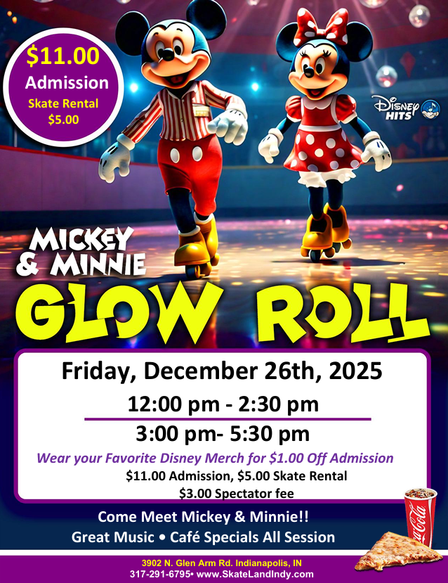 Holiday Glow Skate with Mickey & Minnie! Join us for two magical Glow Sessions filled with skating, music, and Disney fun! Session 1: 12:00–2:30 PM Session 2: 3:00–5:30 PM Wear your favorite Disney merch and get $1.00 off admission! Admission: $11.00 Skate Rental: $5.00 Spectator Fee: $3.00 Come make holiday memories that sparkle with Mickey, Minnie, and all […]