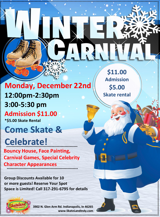 🎡 Winter Carnival at Skateland! 🎡 Get ready for a day full of festive fun and family excitement! Join us for our Winter Carnival featuring:✨ Bounce House🎨 Face Painting🎅 Special Character Appearances Choose from two great sessions:🕛 12:00–2:30 PM🕒 3:00–5:30 PM Bring your friends, your holiday spirit, and get ready to make magical memories on […]