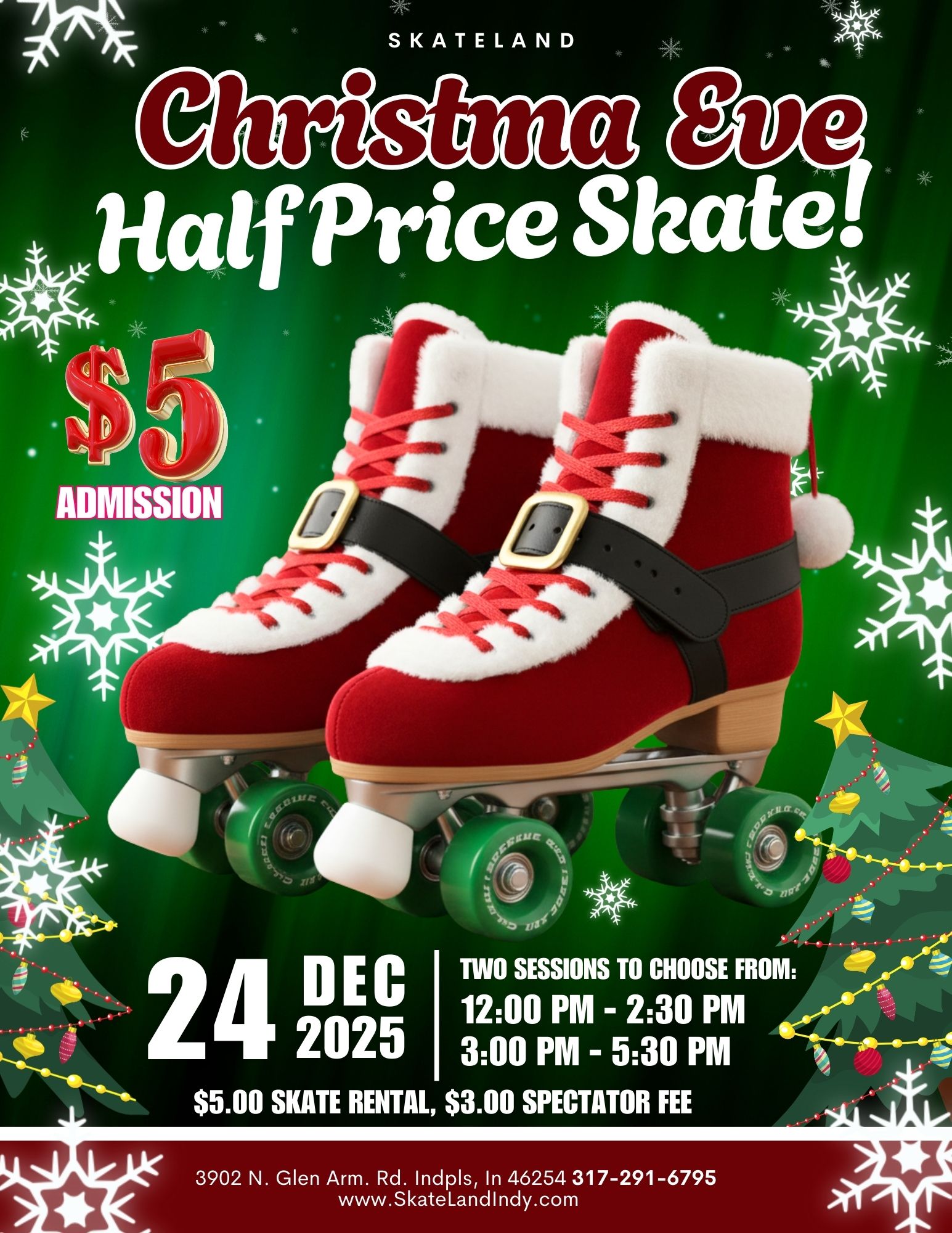 It’s Christmas Eve, and we’re offering $5.00 admission!Keep the Christmas Eve tradition going and celebrate with family at our Christmas Eve Skate 🎄⛸️ Admission: $5.00Skate Rental: $5.00Spectator Fee: $3.00 All Skaters 2-17 Years old are Required to Pay for Admission AND Skate Rental Top 40’s Music, Hip-Hop and R&B Music like 98.3 No Outside Food […]