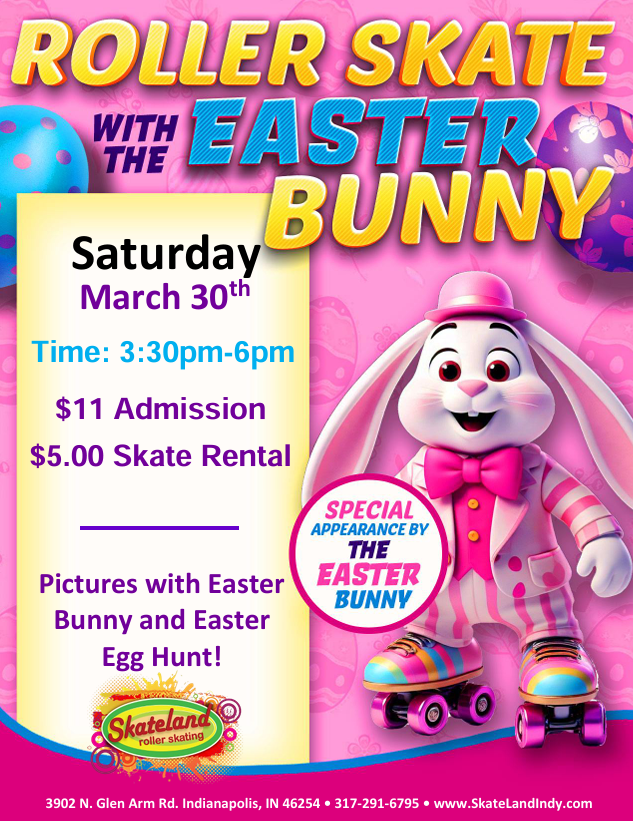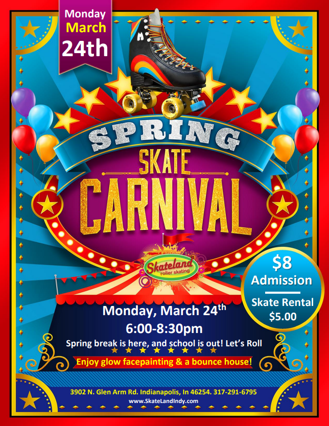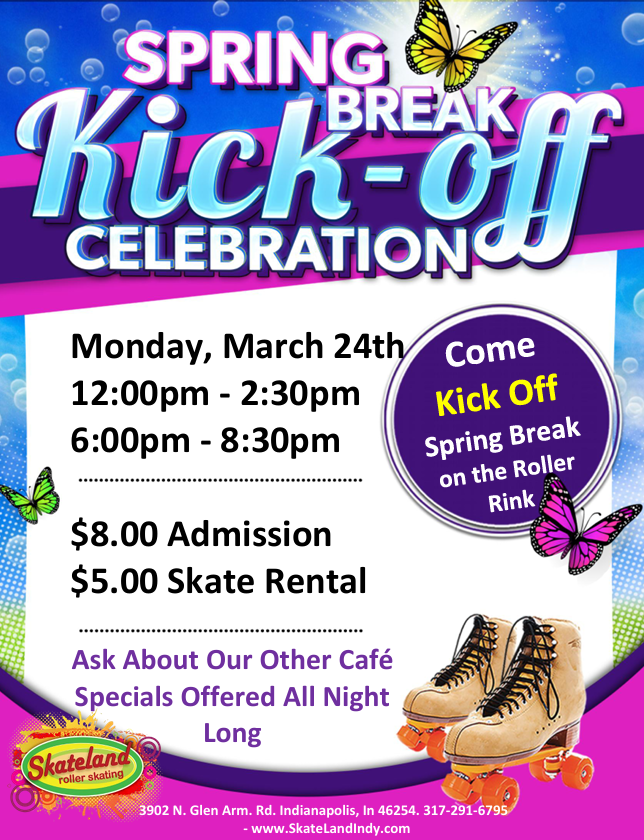🎉 Spring Break Skating Fun at Skateland Indy! 🎉 Mar 24 🎉 Spring Break Skating Fun at Skateland Indy! 🎉 March 24, 2025 @ 12:00 pm - April 4, 2025 @ 4:00 pm