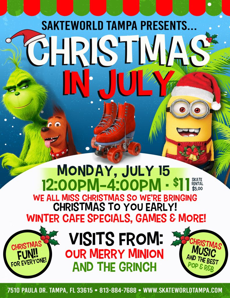 Visits from the Merry Minion and the Grinch plus games, snowball fight, cafe specials and more!