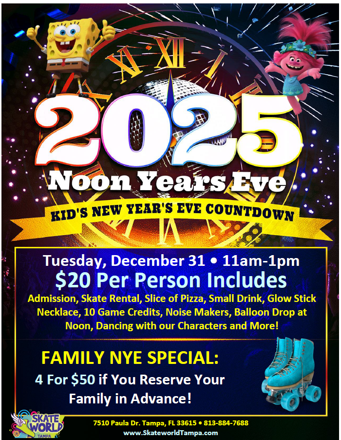 The perfect celebration for New Year’s! The biggest skate party of the year is happening right here at Skateworld!