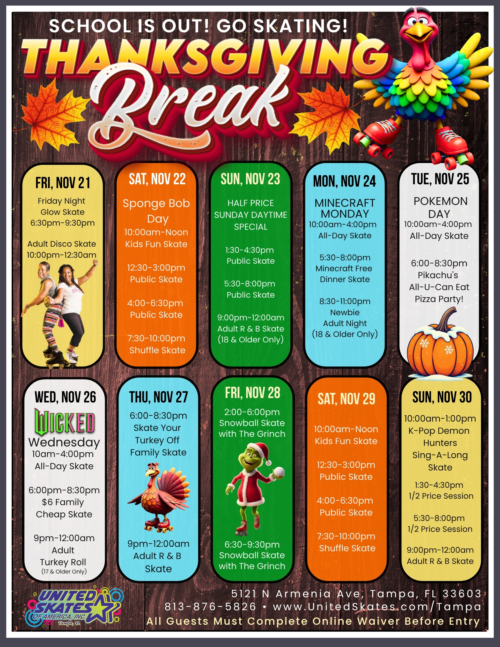 Kick off your Thanksgiving Break with a week full of themed events, family fun, and nonstop skating at