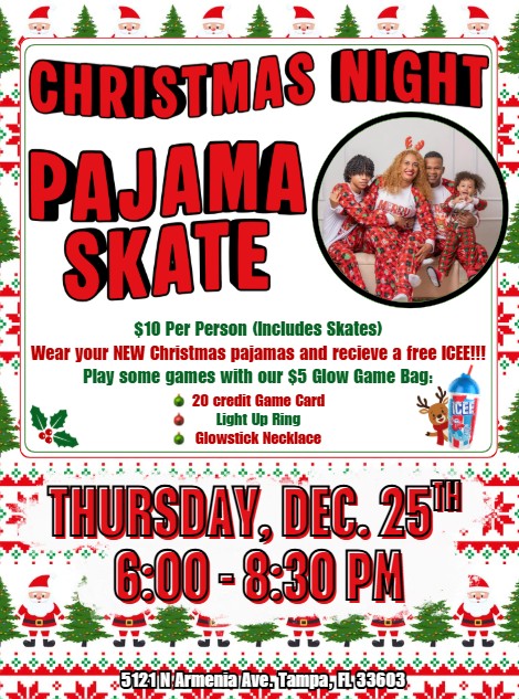 Bring The Whole Family Out Christmas Night For Pajama Fun! Enjoy Skating, Games And Best And Craziest Pajama Contests! Wear pajamas and get a FREE Icee! $10 per person (includes […]