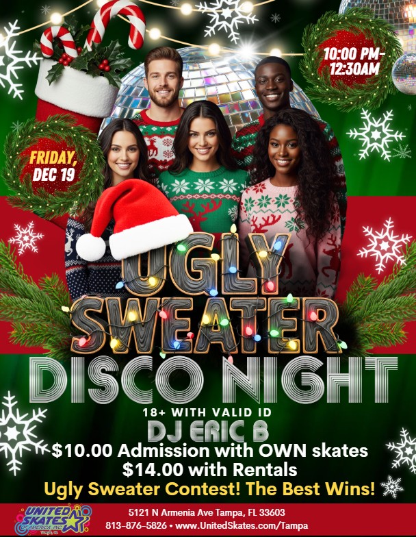 Wear Your Ugliest (Or Best) Sweater, And Skate The Night Away At Our Adult Disco Night!