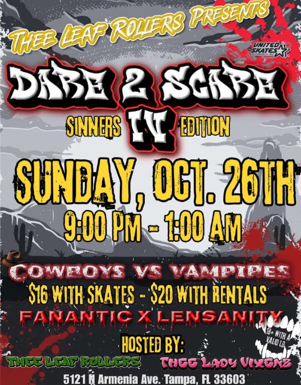 The Leaf Rollerz & Lady Vixxenz Skate Crews Present The 4th Annual Dare 2 Scare Halloween Skate! Featuring the Best R & B, Funk and Hip Hop Music With DJ's […]