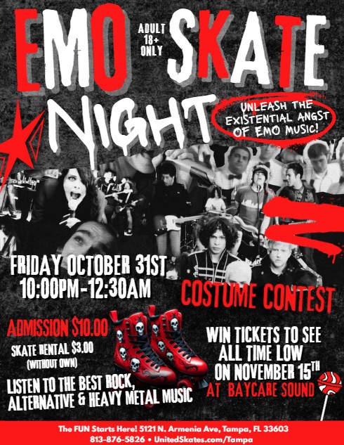 It's A Special Halloween Edition Of EMO Night! Featuring Skating To The Best Rock, Alternative And Metal Music Costume Contest With A Chance To Win Tickets To See All Time […]