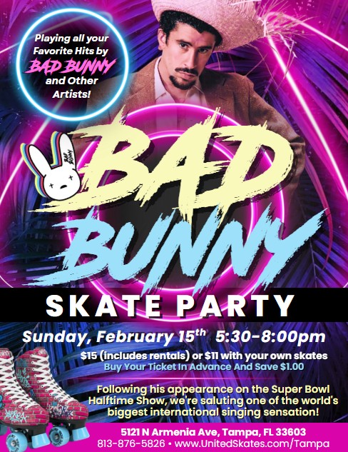 Following His Super Bowl Halftime Performance, We're Celebrating Bad Bunny! Featuring Bad Bunny Hits, Plus Other Artists $15 per person (includes rentals) or $11 with your own skates Buy your […]