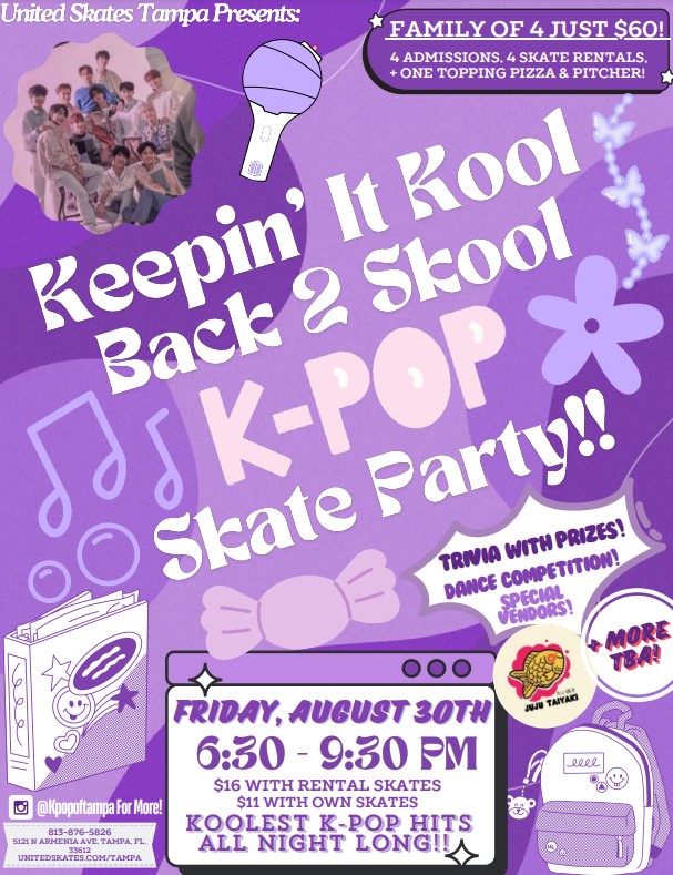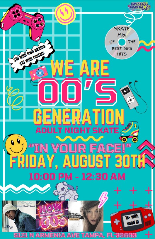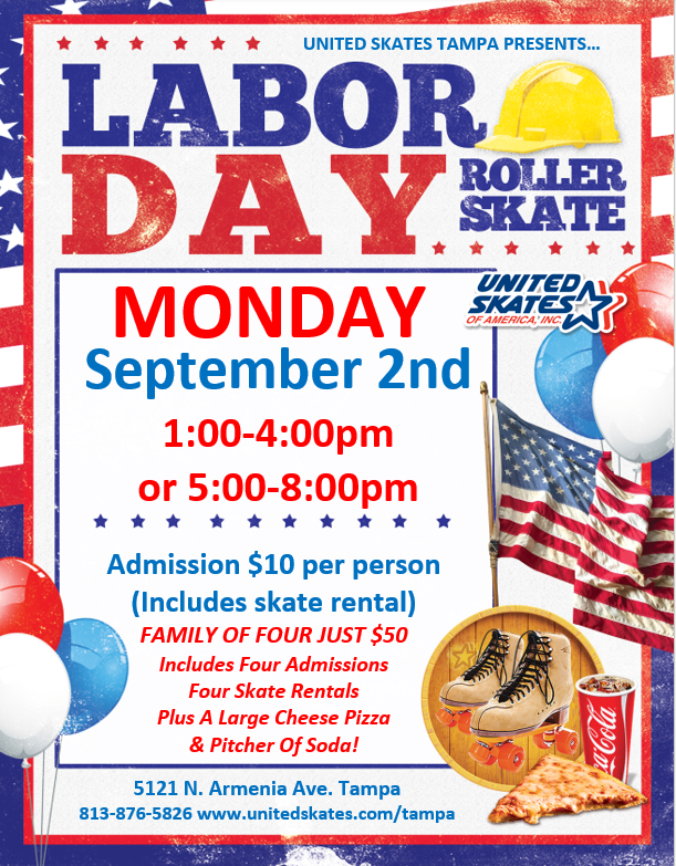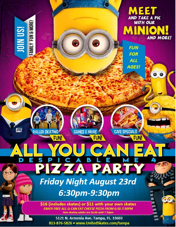 Join Us Every Tuesday This Fall Starting August 13th For FREE PIZZA NIGHT! Featuring Top 40 Music $10 per person - includes skate rental, plus all the delicious cheese pizza you can eat (served 6:00-7:00pm) Non-skating adults $7. Everyone entering the building must pay admission