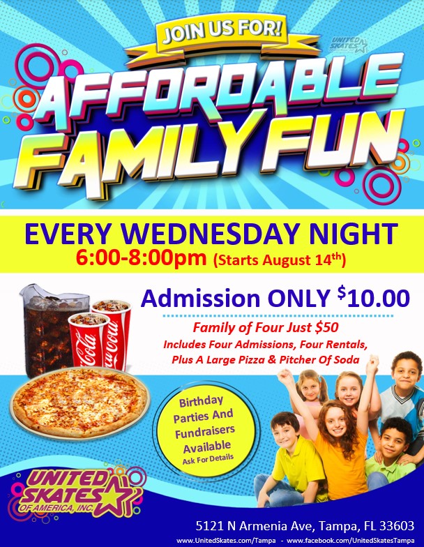 Join Us For A Special Latin Skate For The Whole Family! Featuring the best Latin and Pop Music, plus face painting, Cafe specials and more! Just $10 per person (includes rentals) Family of four only $50 - includes four admissions, four rentals, plus a large pizza & pitcher of soda (at least one parent must […]