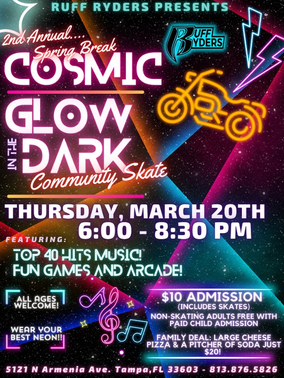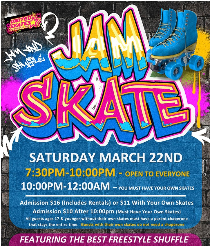 Join Mario And Yoshi For Our Spring Break Special Featuring Top 40 Pop Music $12 per person - includes skate rental, plus all the delicious cheese pizza you can eat (served until 7:30pm) Non-skating adults are $7. Everyone entering the building must pay
