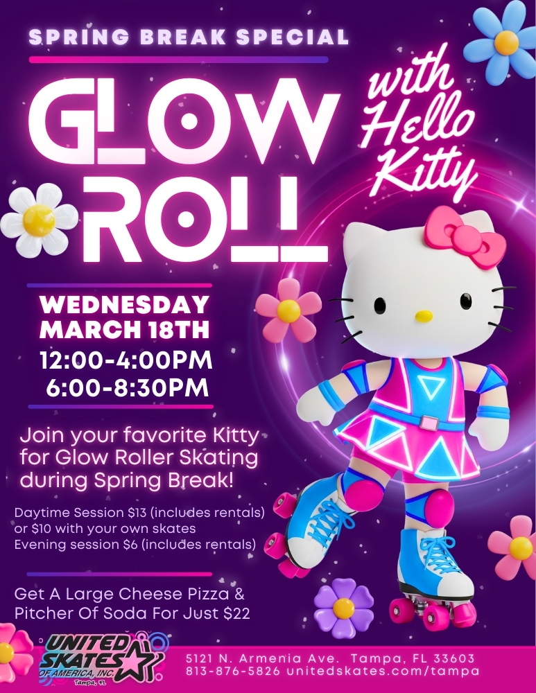 Everyone's Favorite Kitty Is Here For A Spring Break Glow Skate Featuring pop music Admission $13 per person (includes rentals) or $10 with your own skates Non-skating parents are free […]