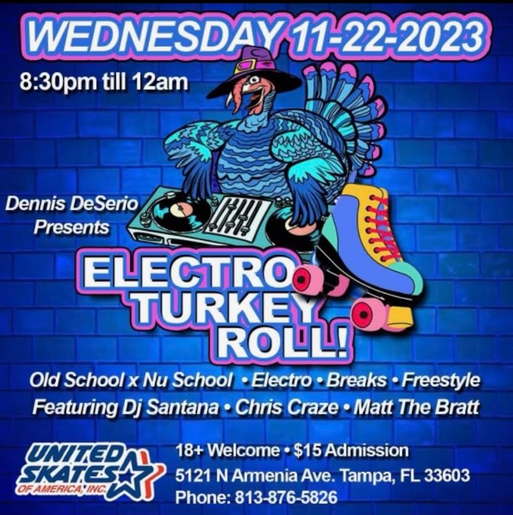 Dennis Deserio Presents A Thanksgiving Eve Experience! Featuring DJ's Paul Santana, Chris Craze and Matt The Brat! Old School vs New - Electro, Beats, Freestyle $15 per person (Includes skates) 18 & Older Only Click Here for our Online Waiver