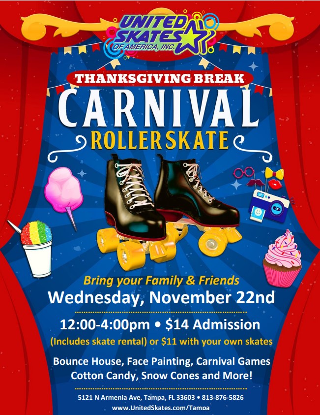 Thanksgiving Break Special $15 includes skate rental, plus all the delicious cheese pizza and soda you can eat! $10 if you have your own skates $10 for non-skating adults Everyone entering the building must pay. Pizza served until 8:00pm