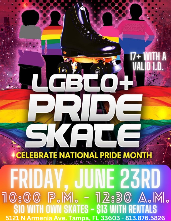 United Skates Celebrates Pride Month With A Special Adult Event Admission $13 (includes skates) or $10 with your own Open to ages 17 & older only with ID