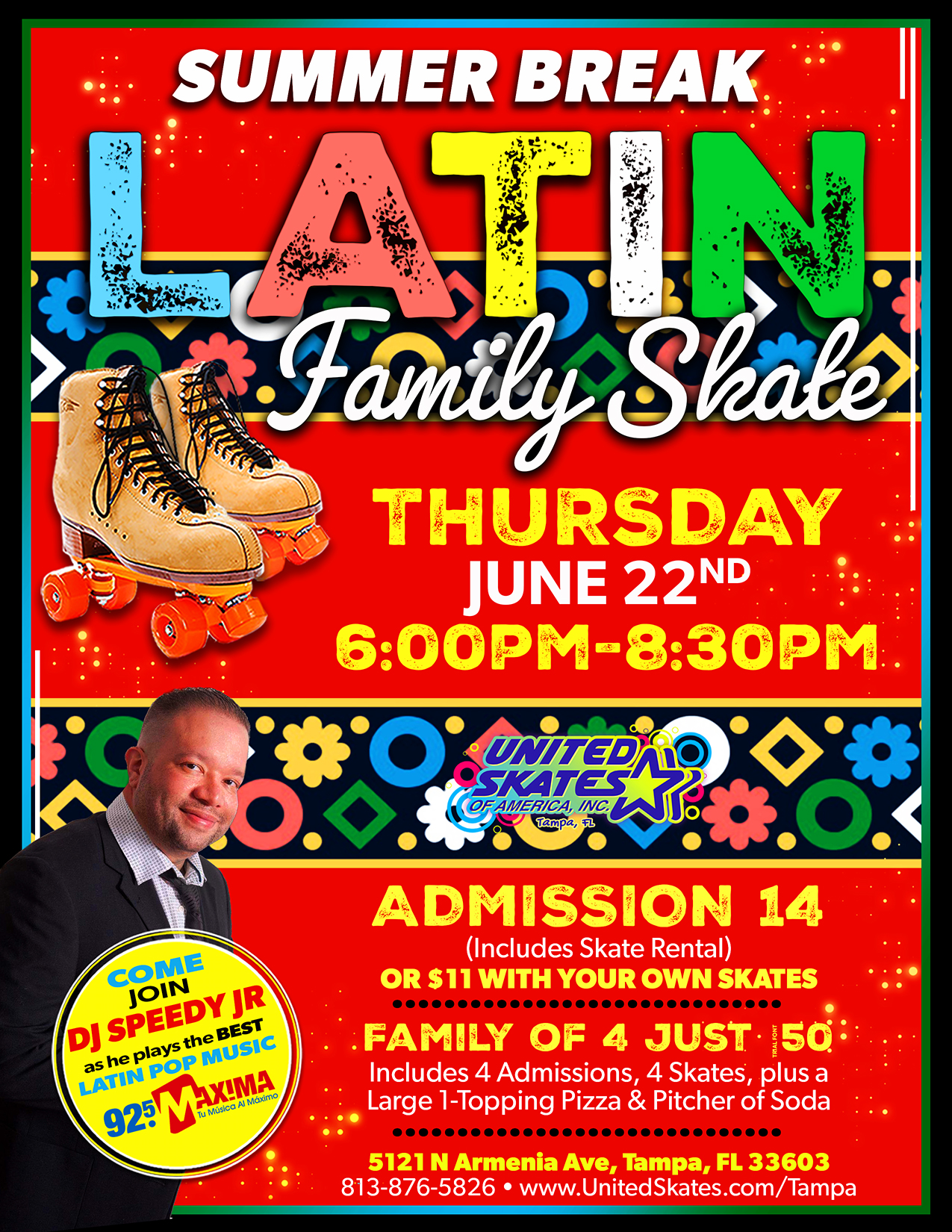 Join DJ Speedy Jr. For Our Summer Latin Skate Special Featuring Latin Pop Music $14 per person (includes skates) or $11 with your own skates SPECIAL... Family of 4 just $50 - includes 4 admissions, 4 rentals, plus a large cheese pizza & pitcher of soda (At least one parent must participate to get Family […]