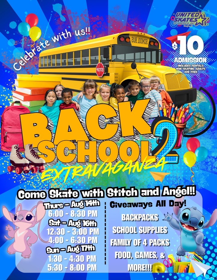 Join Us As We Celebrate The 1st Week Of School! Win great prizes, like backpacks, school supplies, Cafe items & more! $10 per person (includes rentals) Have Dinner With Us... Get A Large Cheese Pizza & Pitcher Of Soda For Just $22 All guests must complete our online waiver prior to entry